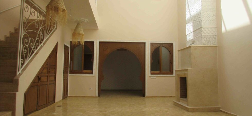 Charmant riad proposant 3 belles chambres. Près installation d’un bassin sur la terrasse, toit couverture patio électrique sans oublier l’accès voiture parfait. A meubler